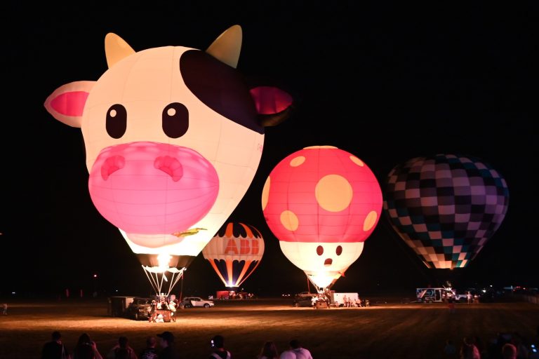 Outre Picasso, Alex Charette a aussi fabriqué une autre montgolfière de forme régulière nommée Napolitaine, ainsi que l’adorable vache Minnie Moo qui a vu le jour en 2023.