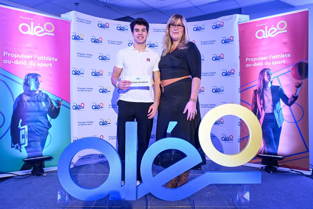 Yoann St-Martin a obtenu une des 76 bourses collégiales et universitaires octroyées par la Fondation Aléo et ses partenaires. Le demi-défensif de l’équipe de football des Géants du Cégep Saint-Jean-sur-Richelieu a obtenu une bourse de 3000$ de la Fondation Aléo. Joueur défensif par excellence en 2023 dans la ligue juvénile du Réseau du sport étudiant du Québec avec les Voltigeurs du Collège Bourget, le Johannais s’est joint aux Géants en 2024. Il a réussi 22 plaqués solos et deux plaquages du quart-arrière. Sur la photo, il reçoit sa bourse des mains de Patricia Demers, directrice générale de la Fondation Aléo.