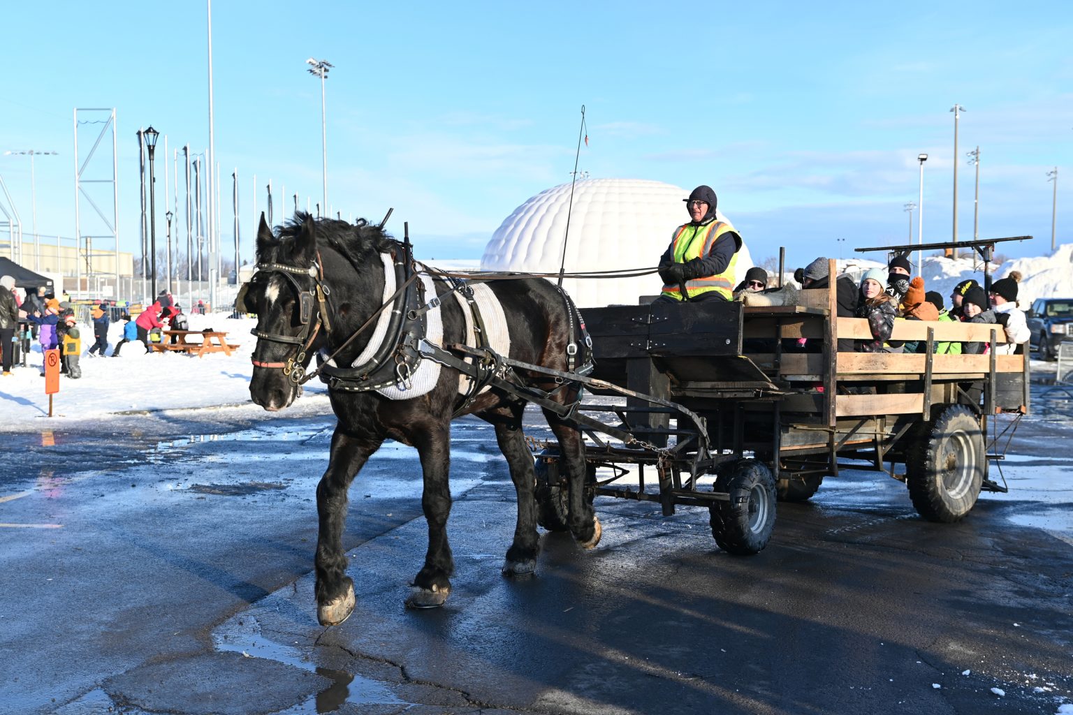 Les jeux gonflables et la glissade sur tube sur la butte à glisser sont de retour, tout comme les promenades en carriole et la tire sur la neige. Un foyer extérieur permettra à tous de se réchauffer.