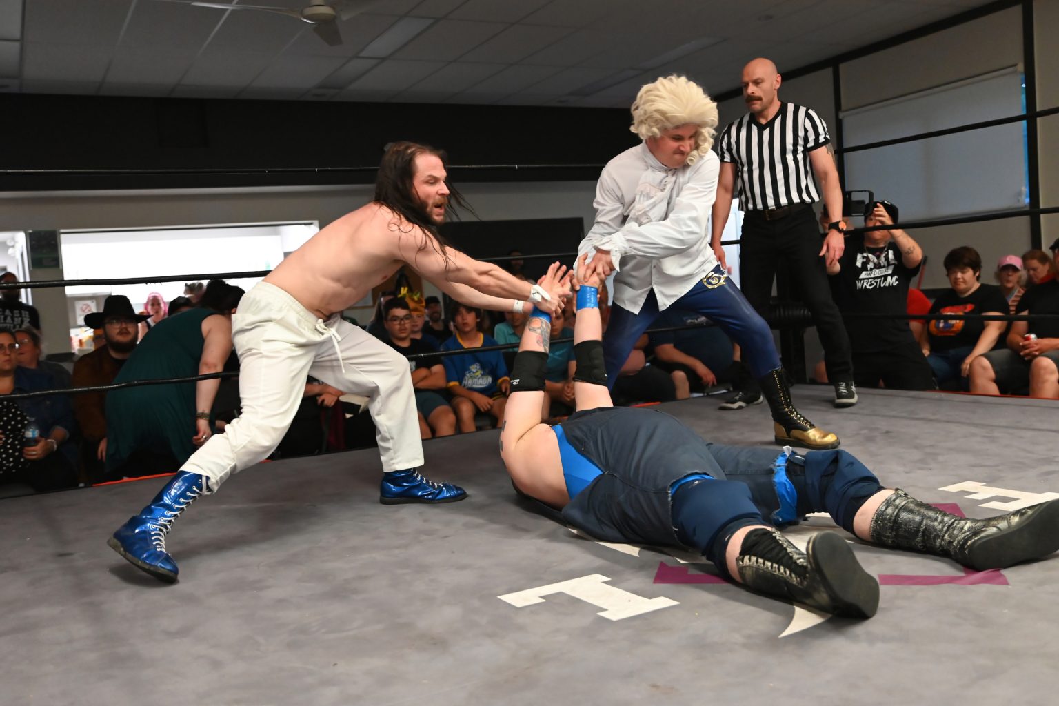 Jacko The Preacher et Charles Cihi contre Farmer Punk. (Photo Le Canada Français - Julien Saguez)
