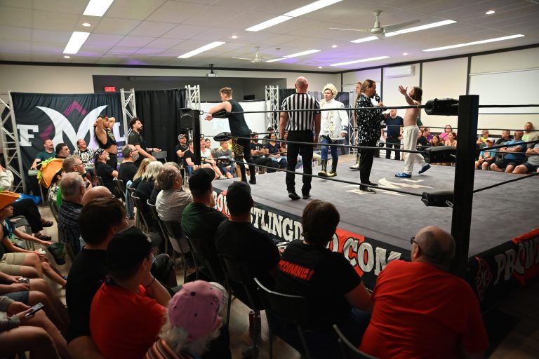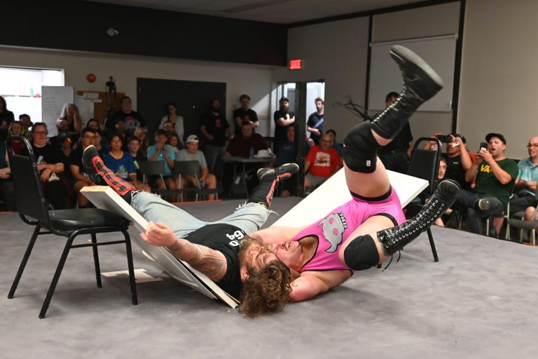 La FML a présenté sa dernière soirée de lutte le 1er juin au Pavillon des loisirs de Saint-Alexandre. Derrick Butler, Josh Angel, Melanie Havok, Sam Kelly, Death N' Tacos, Tyler Nox et Nathan Hope étaient notamment en vedette. (Photo Le Canada Français - Julien Saguez)
